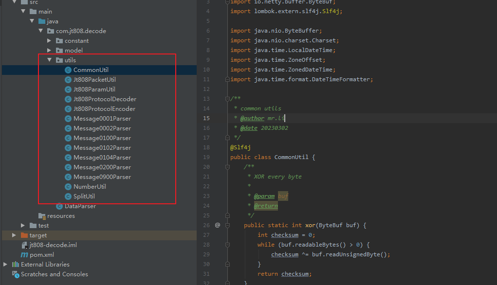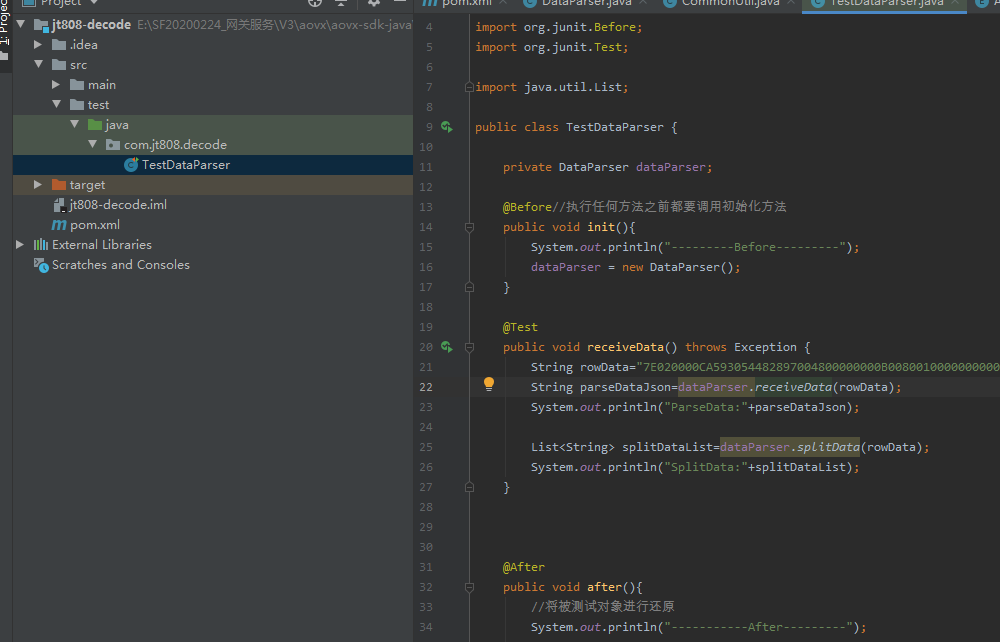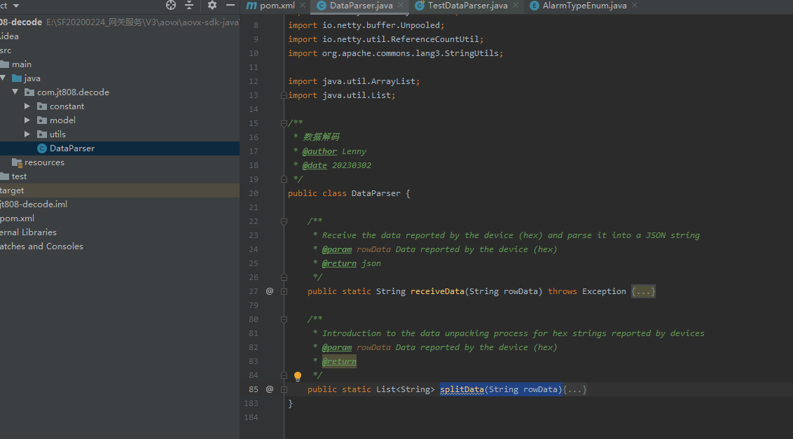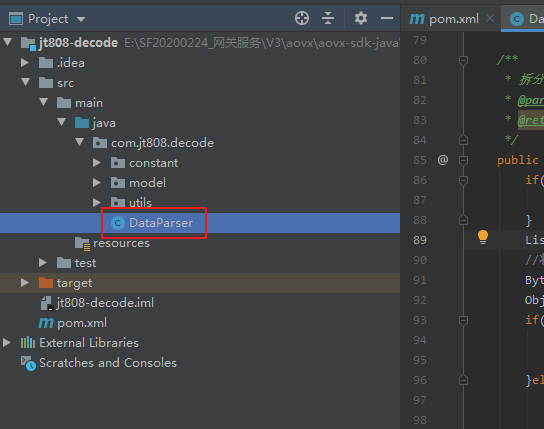 项目名称为:jt808-decode,方法入口类为DataParse.
