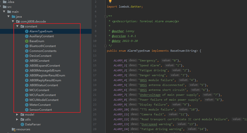 (1)constant:定义了解析设备原始数据过程中用到的一些常量或者枚举定义