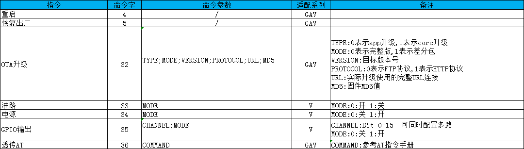 对应的params,可以设置的命令ID以及传入的值说明。