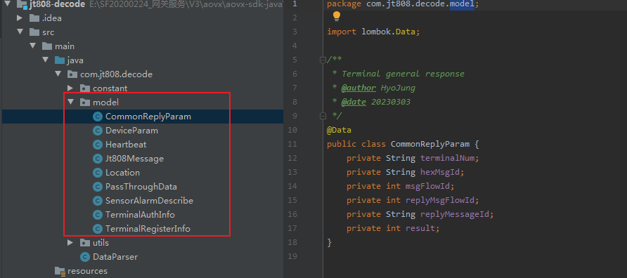 此开发主要是针对AOVX的产品,对设备上行数据进行解码以及平台下行控制命令进行组包的工具包。采用了Java SpringBoot2.x框架。
