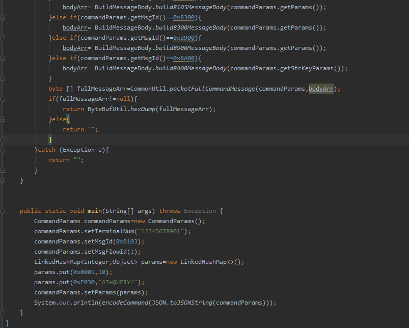 {"msgFlowId":1,"msgId":33027,"params":{1:10,61488:"AT+QUERY?"},"terminalNum":"12345678901"}