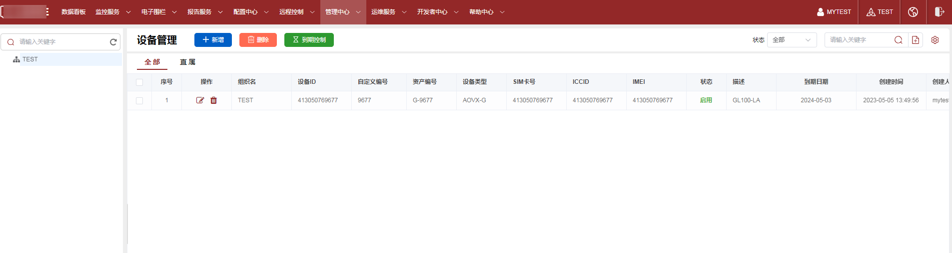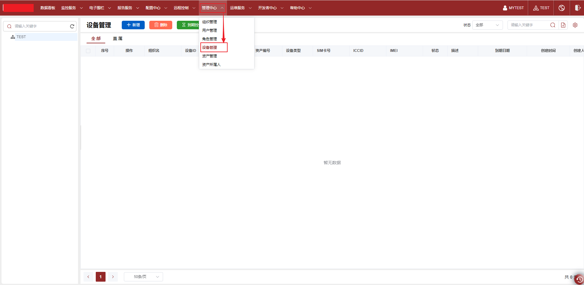 注册设备的入口在系统的管理中心——>设备管理模块,界面如下图: