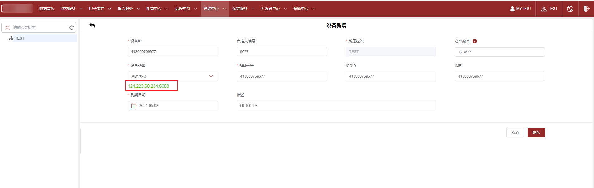 首次使用系统,需要先将设备注册到系统,并配置设备的IP到指定的服务器地址