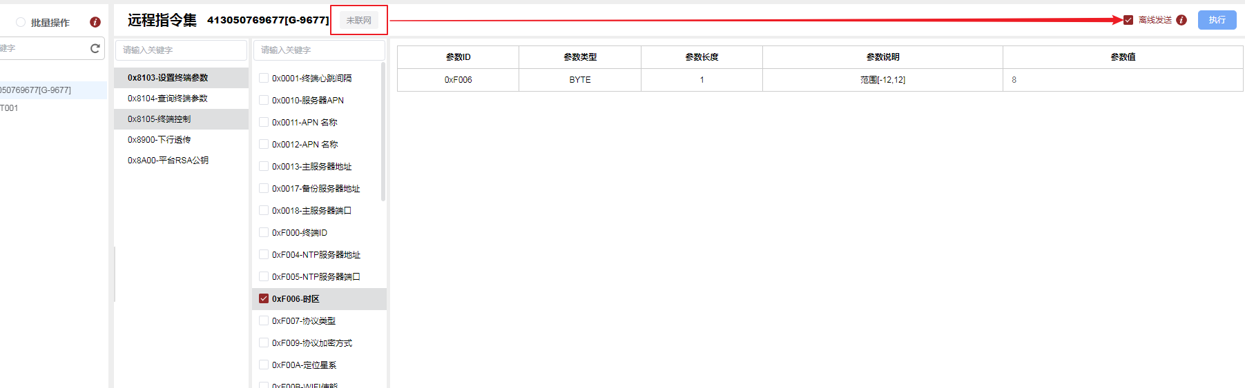 离线下发:设备如果当前没有联网,系统会将此条命令缓存起来,等设备上线后系统自动下发。