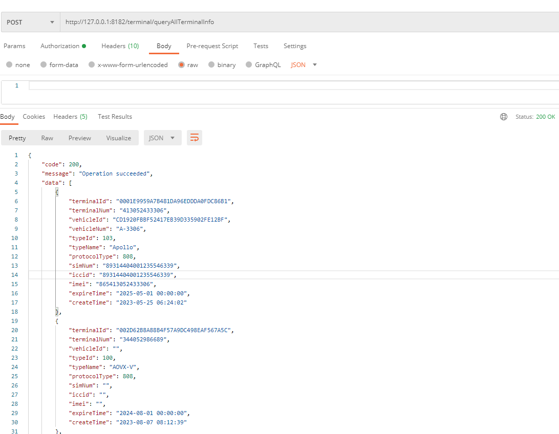 No parameters required, all terminal information under this account will be obtained based on the request header token