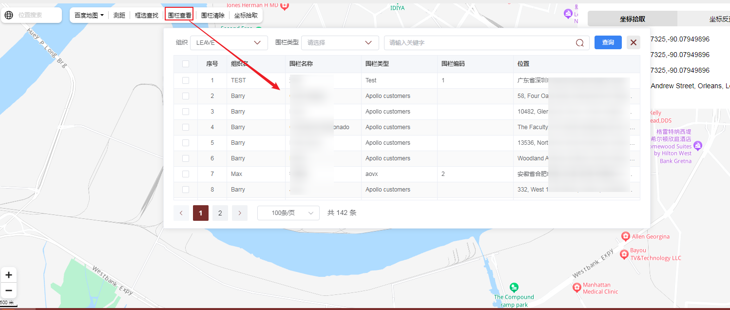 Click “fence view” in the map toolbar to select the planned electronic fence and present it on the map