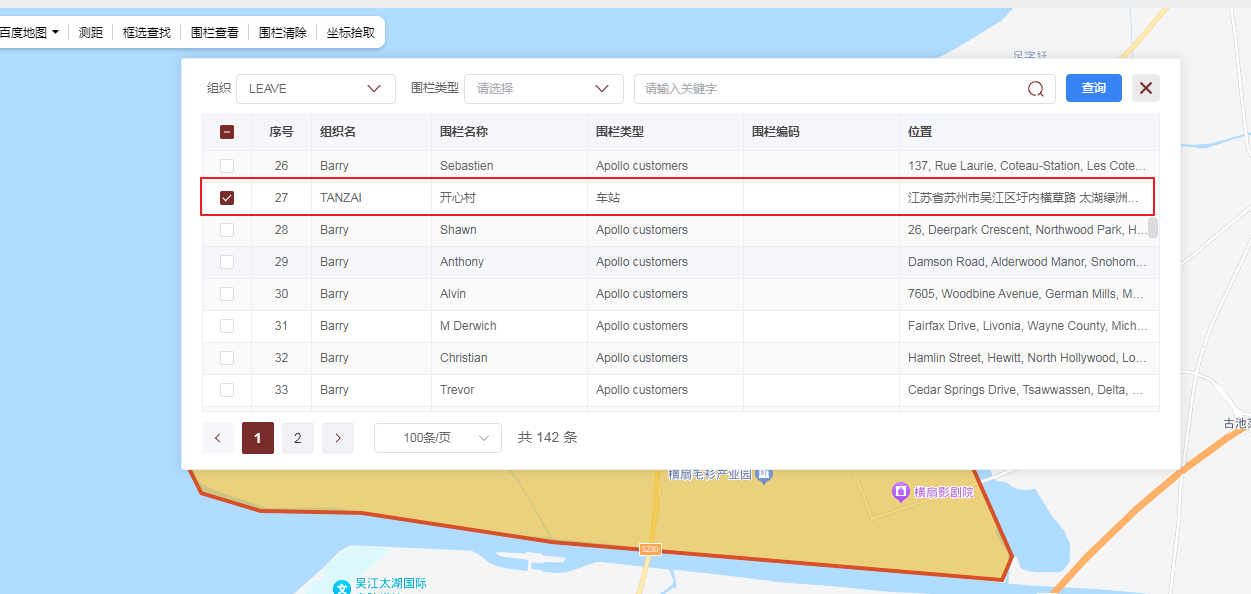 For example, if we select a fence, the information of the fence we just selected will be displayed on the map