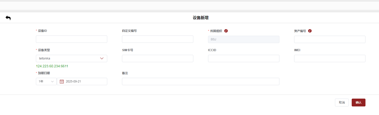 When registering the device, select teltonik as the type