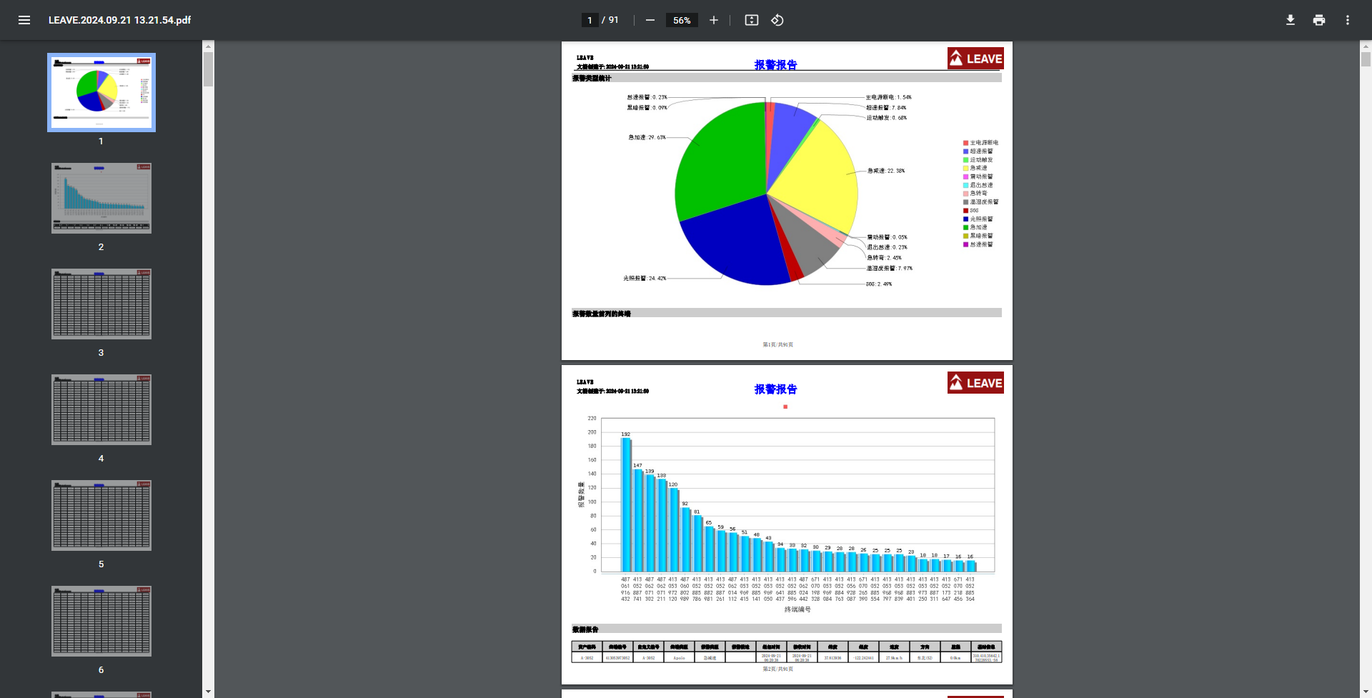 Add style effects when exporting PDFs for real-time monitoring, trajectory playback, alarm reports, temperature and humidity curves, and other reports