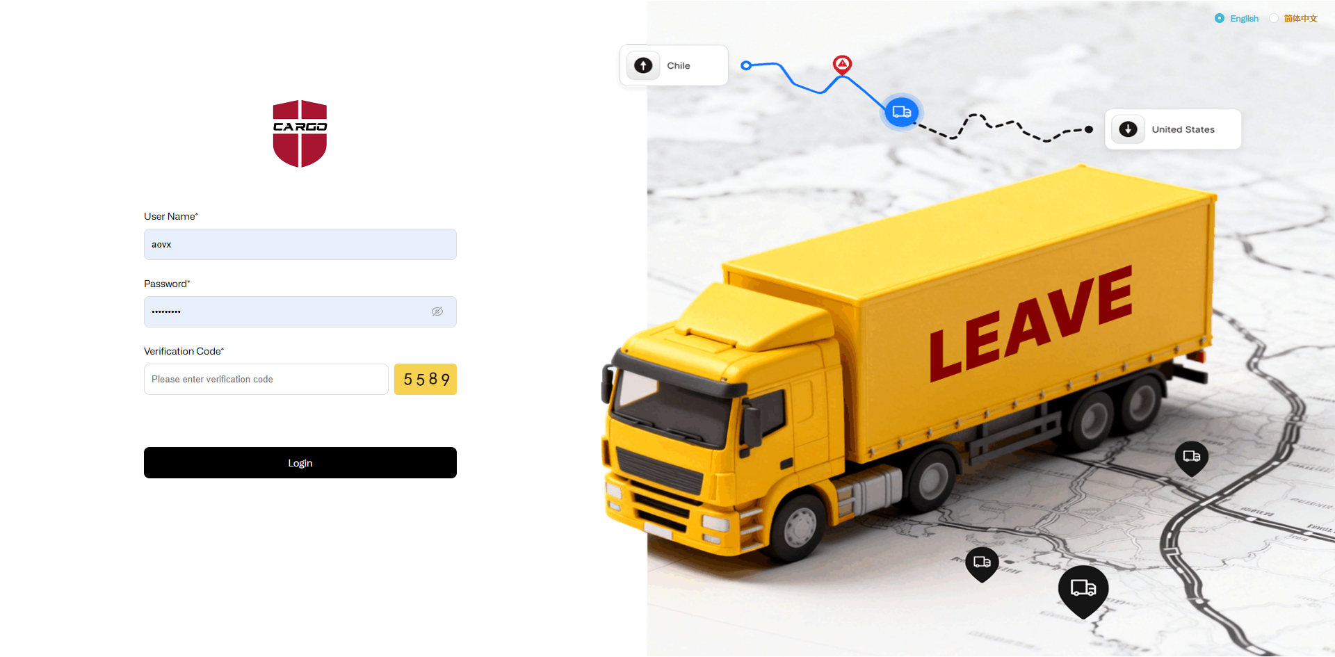 UCargo platform login address: https://cloud.aovx.com:9443/login