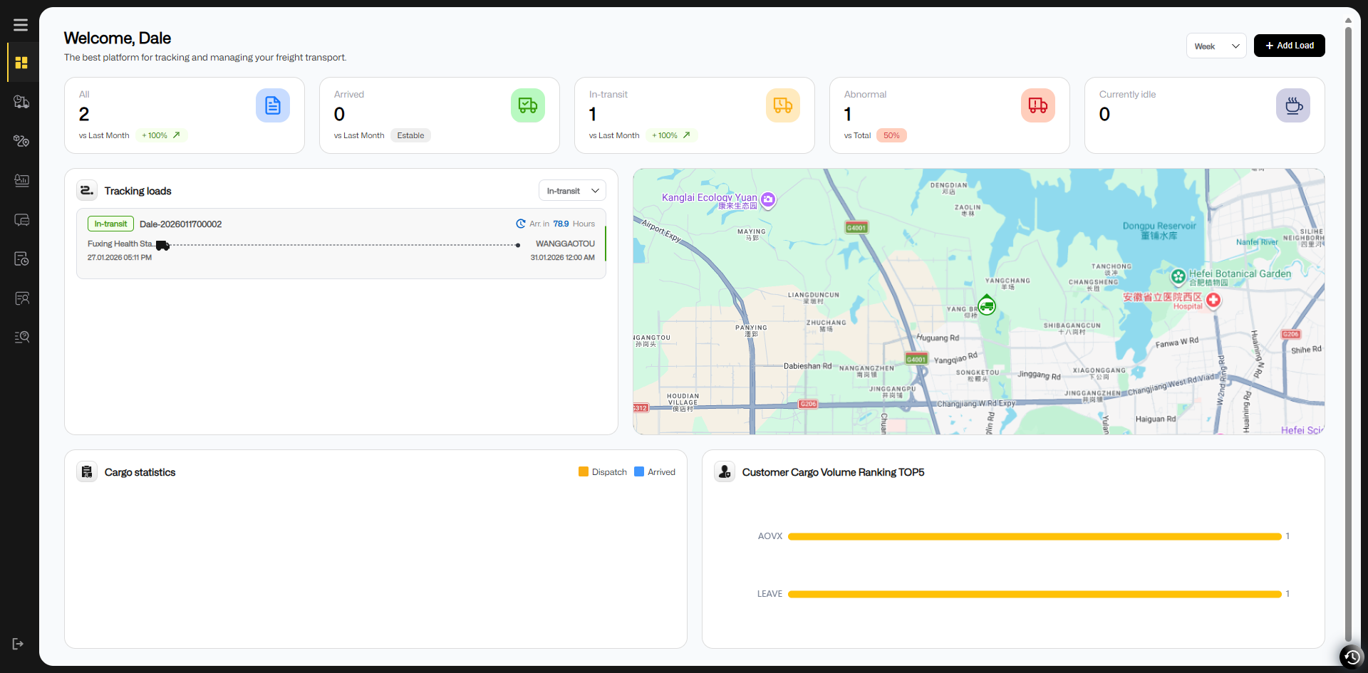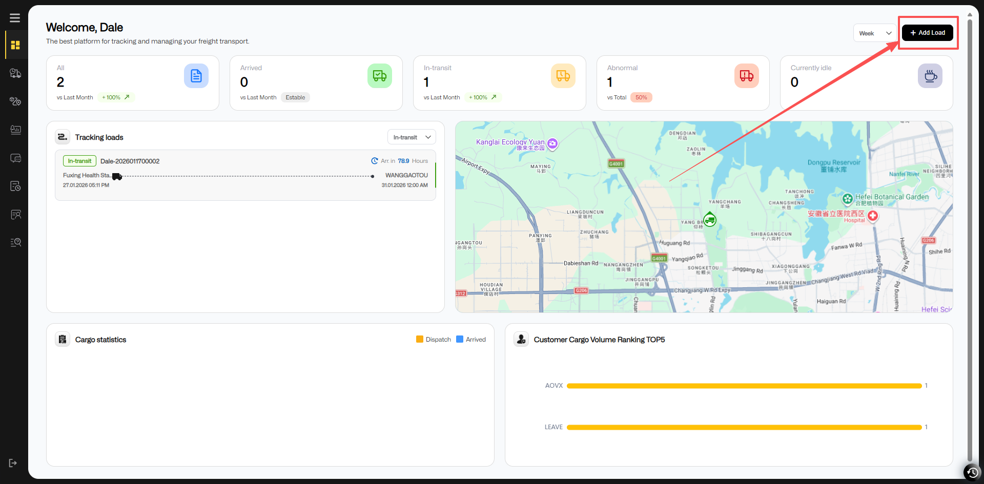 Click the Add Load button to quickly create a transportation task, provided that you have completed the preset of all basic information.