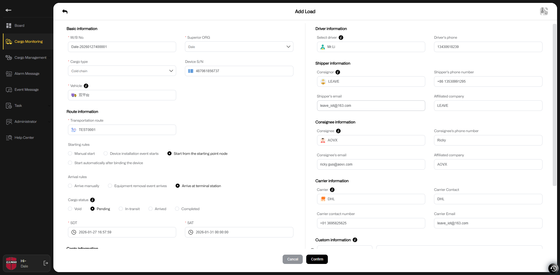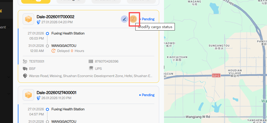 Select a task panel to view the traveled route of the current vehicle, its real-time location, transportation progress, sensor data and cargo details.