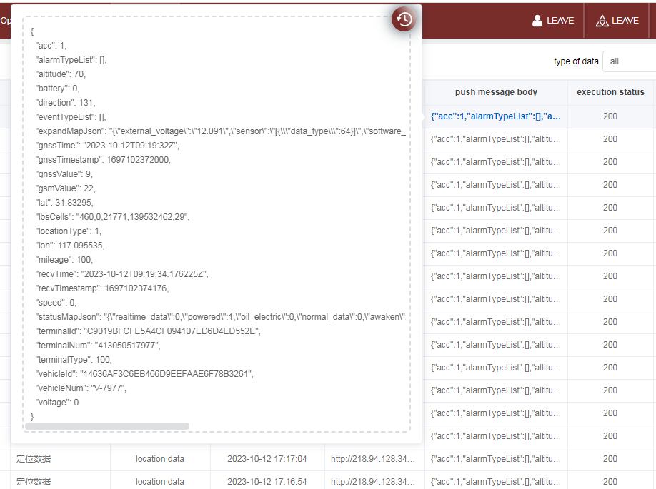 When our mouse moves over the record in the “Push Message Body” column, detailed push message body content will be displayed.