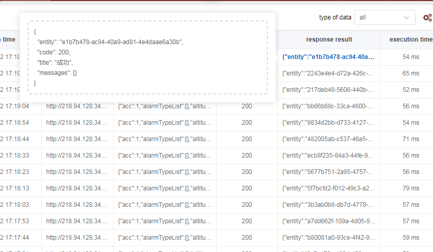 When our mouse moves over the record in the “Response Result” column, the message content of the response will be displayed.