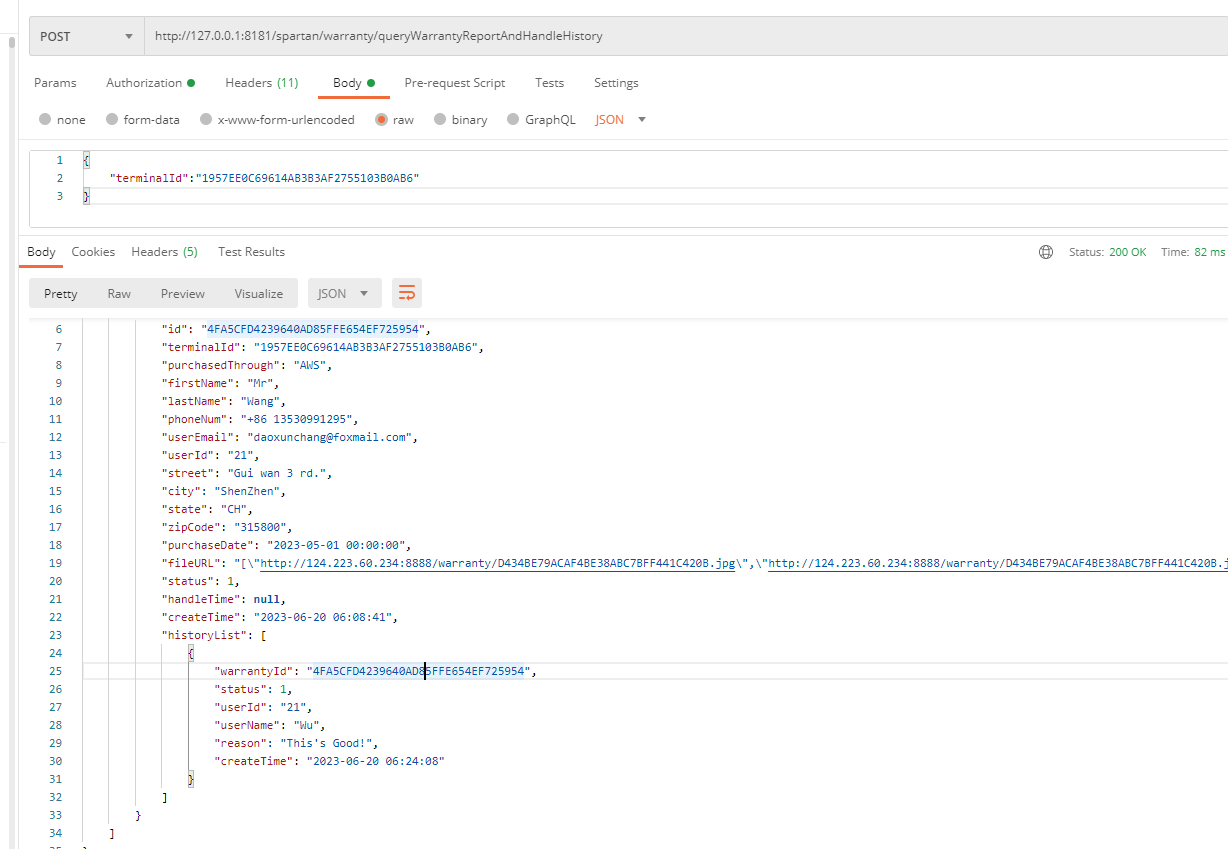 http://124.223.60.234:8181/spartan/warranty/queryWarrantyReportAndHandleHistory