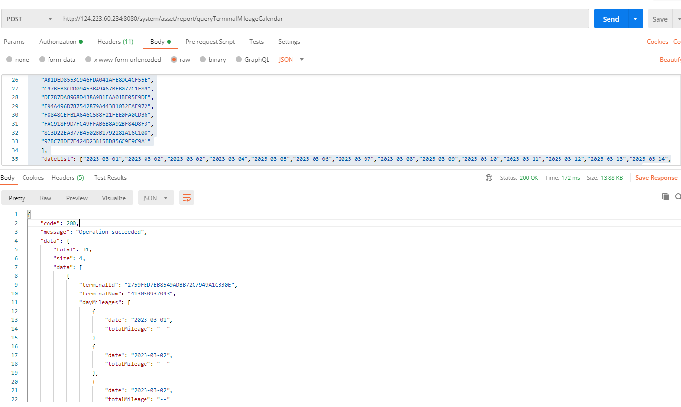 http://124.223.60.234:8080/system/asset/report/queryTerminalMileageCalendar