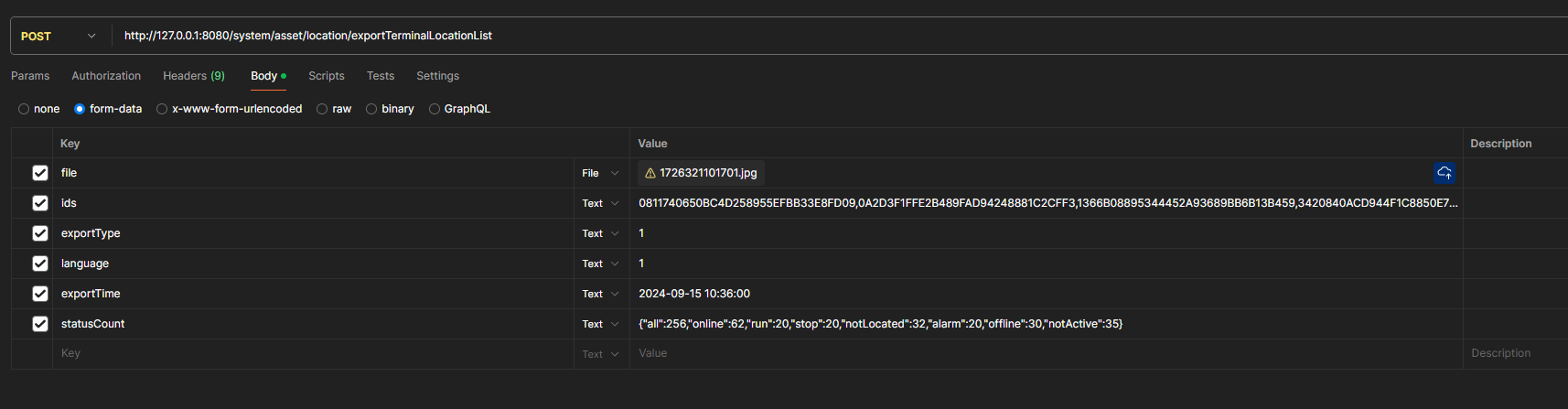 http://124.223.60.234:8080/system/asset/location/exportTerminalLocationList