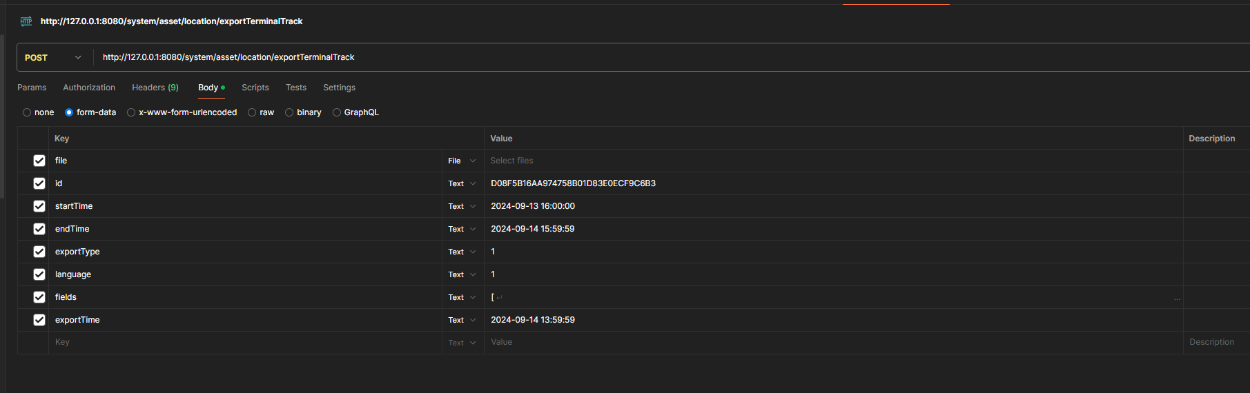 http://124.223.60.234:8080/system/asset/location/exportTerminalTrack