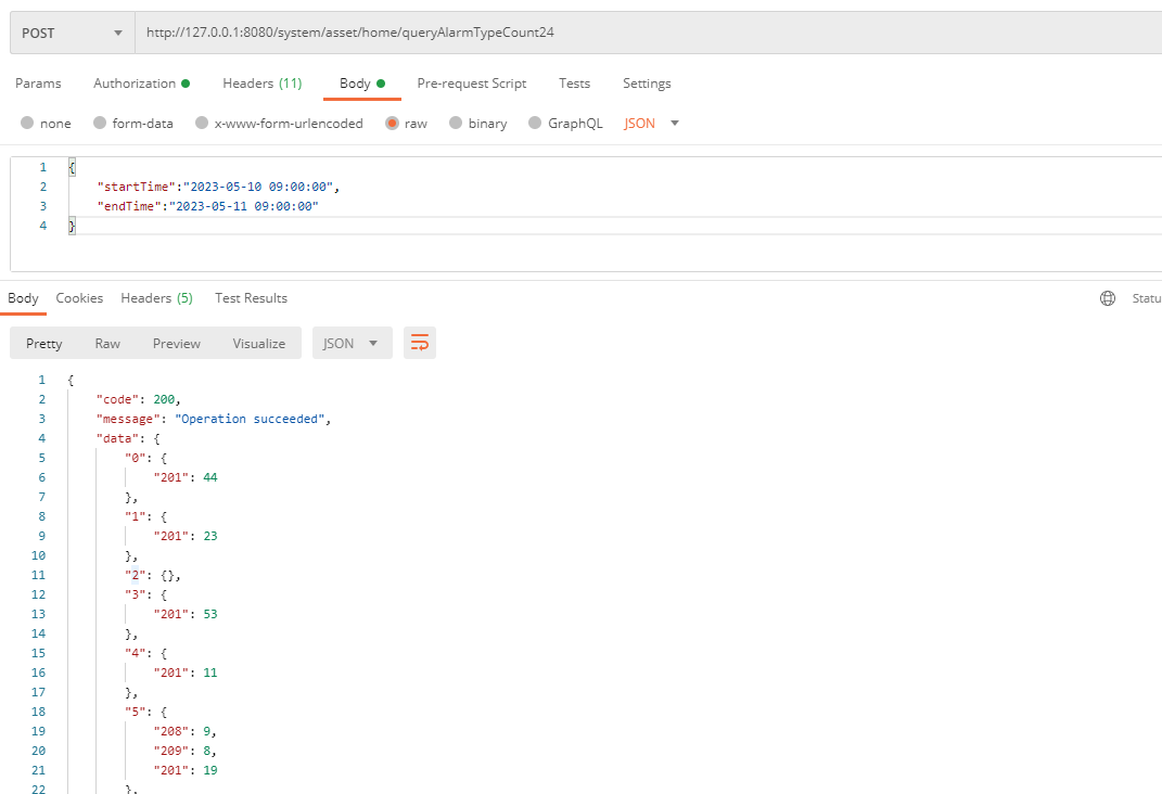 数据返回的是一个Map<小时,Map<报警类型,总数>>格式的数据