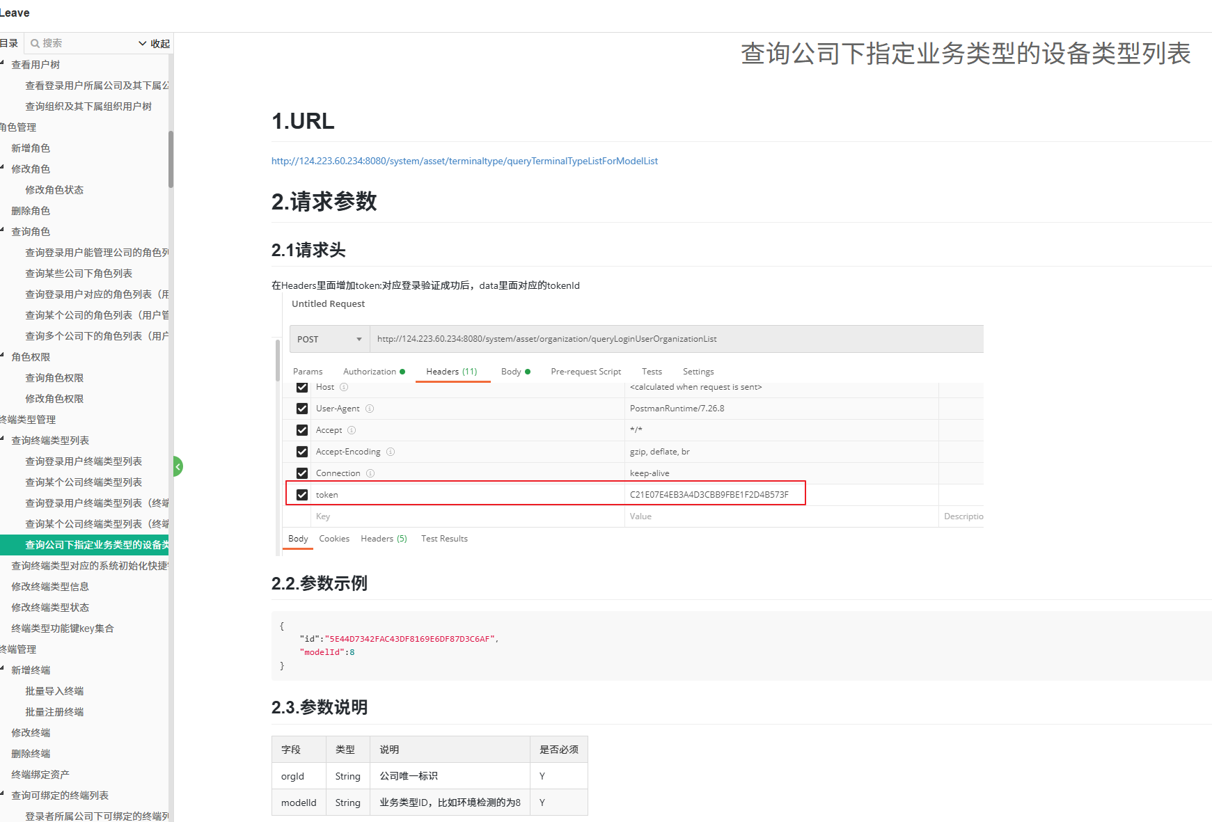 | typeId | String | 设备类型ID,主要是业务类型为8的设备类型可供选择,注册设备选择类型列表的接口参考下图 | Y |