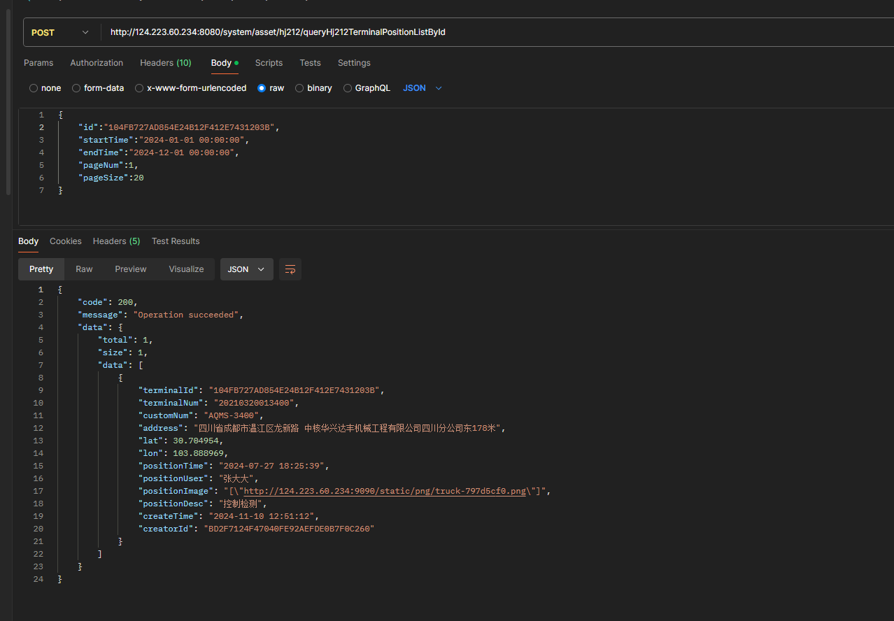 http://124.223.60.234:8080/system/asset/hj212/queryHj212TerminalPositionListById