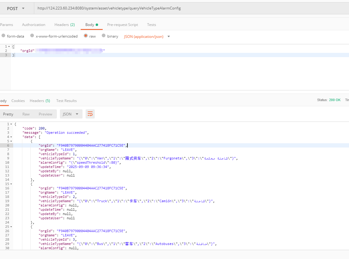 http://124.223.60.234:8080/system/asset/vehicletype/queryVehicleTypeAlarmConfig