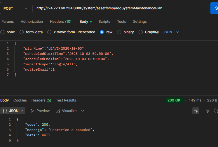 http://124.223.60.234:8080/system/asset/smp/addSystemMaintenancePlan
