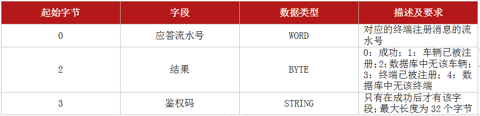 终端注册应答消息体