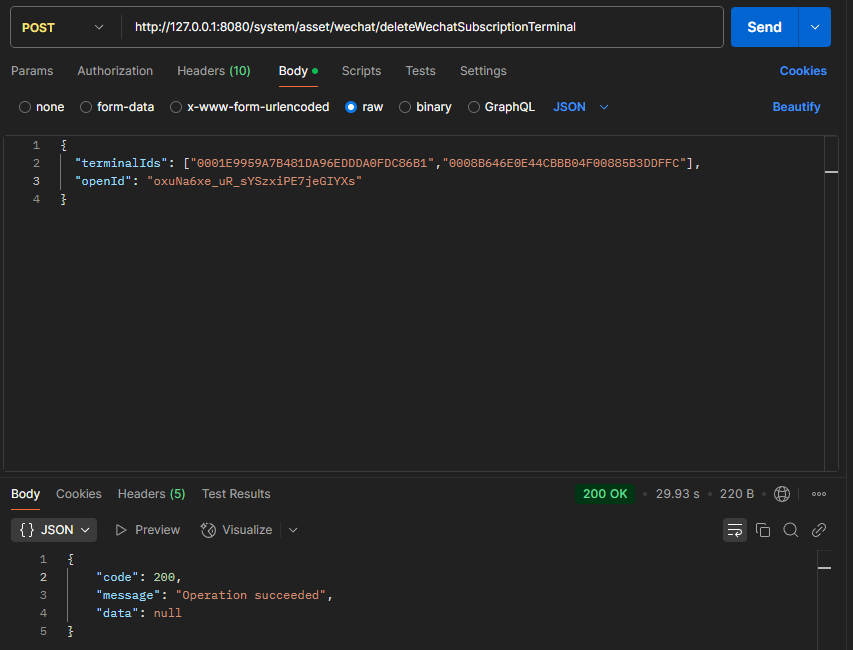 http://124.223.60.234:8080/system/asset/wechat/deleteWechatSubscriptionTerminal