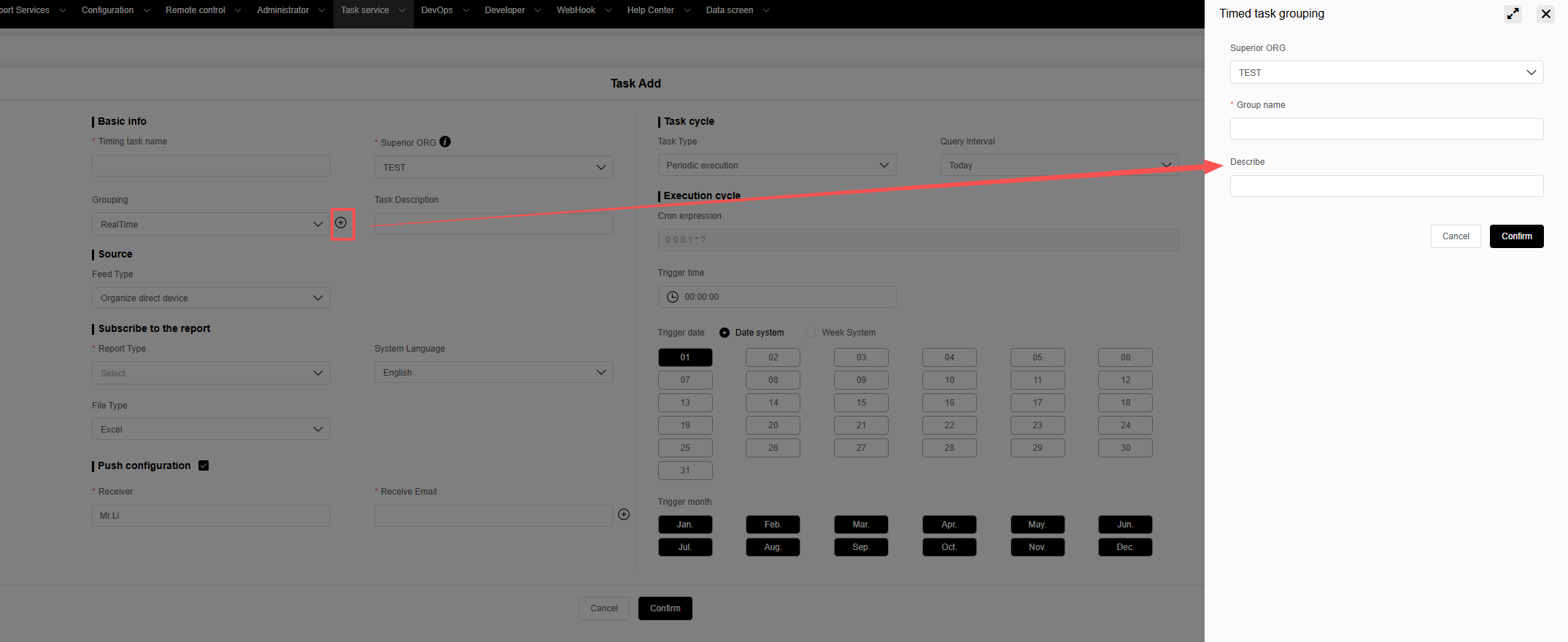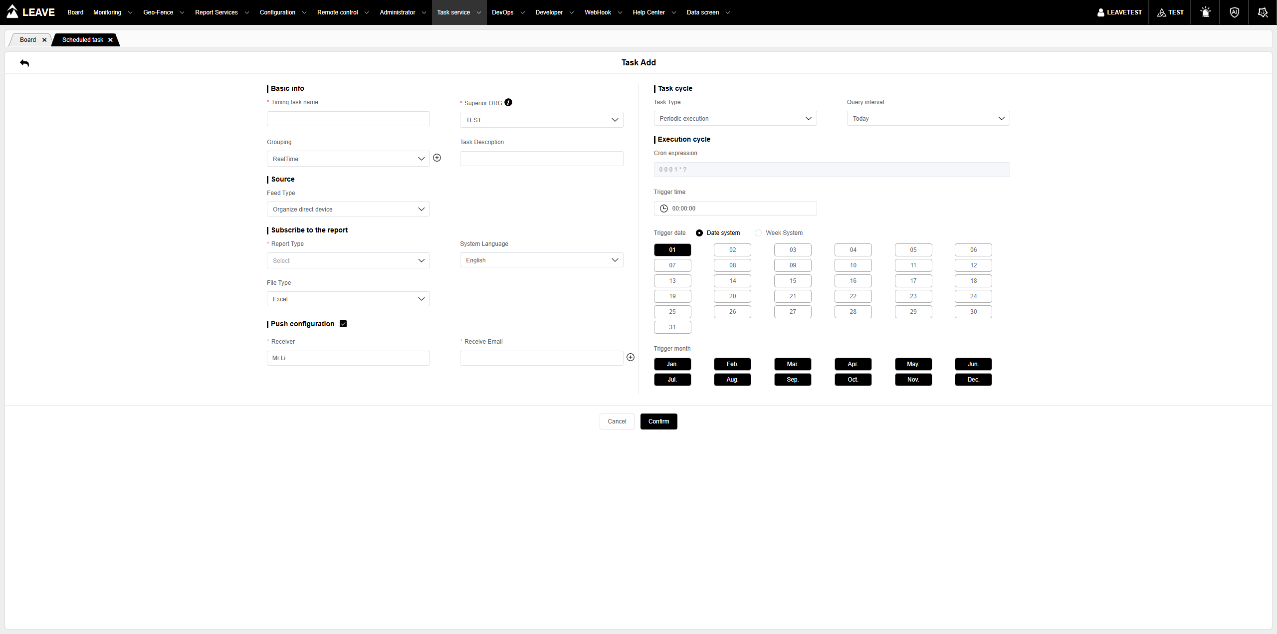 点击“新增”按钮可以添加一个新的定时任务。