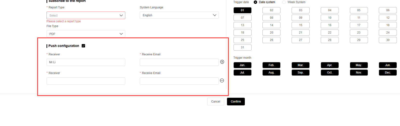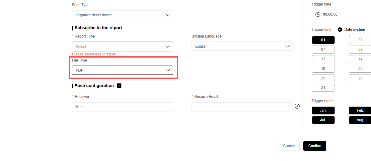 你可以选择报告生成的类型,与导出报告的类型一致,支持PDF与Excel的方式。