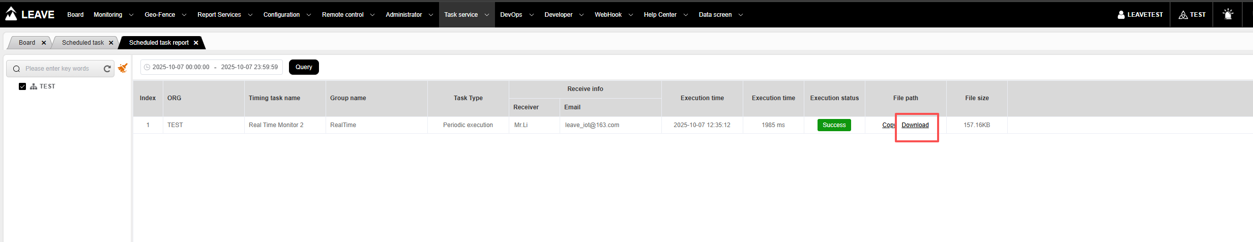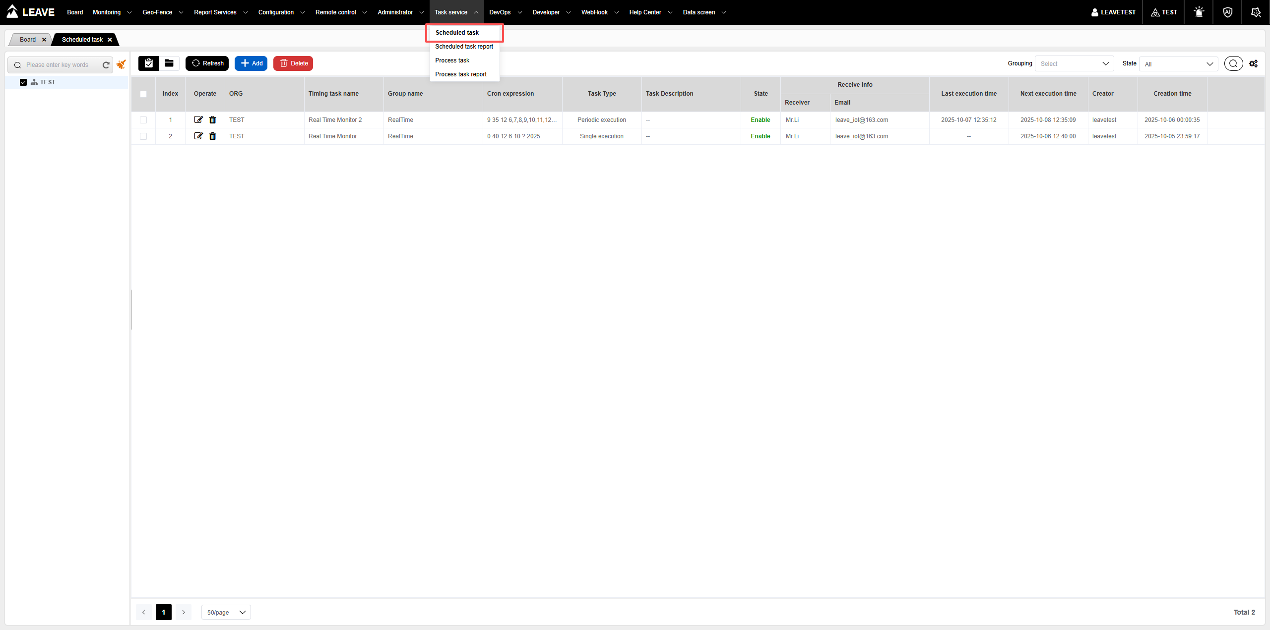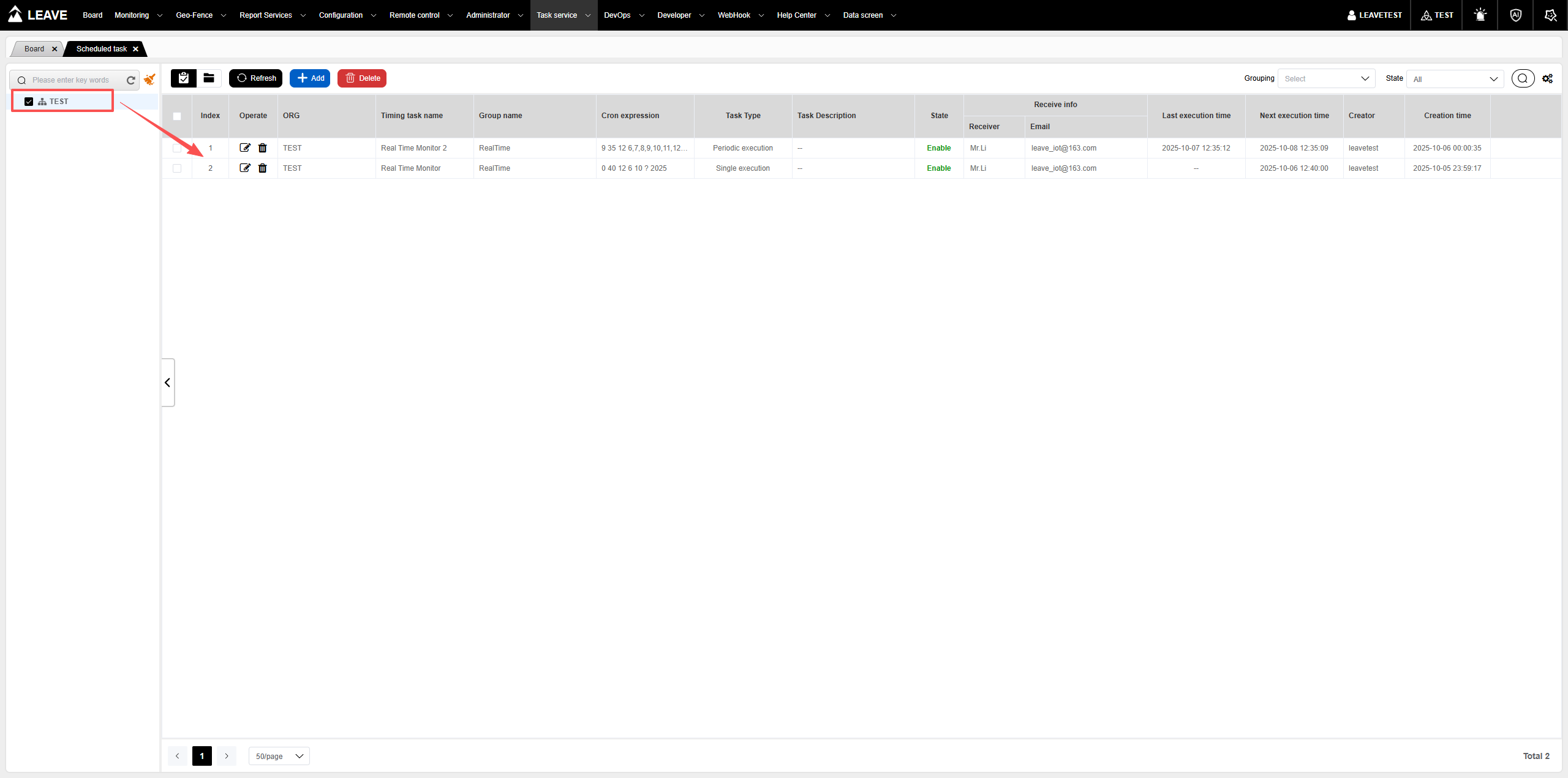 选择“组织”后,你可以查看当前组织已经创建的定时任务列表,可以对已经创建的定时任务进行维护操作。