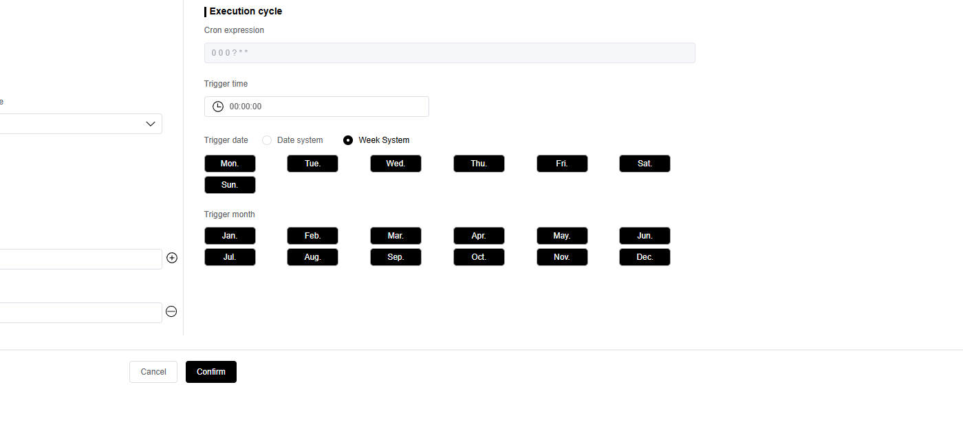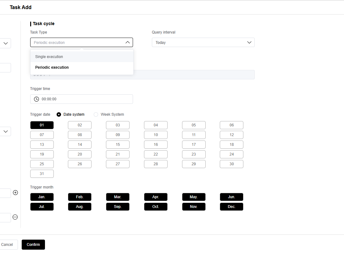如果是周期触发,你可以选择触发的条件,比如每个月的几号,或者每周周几。