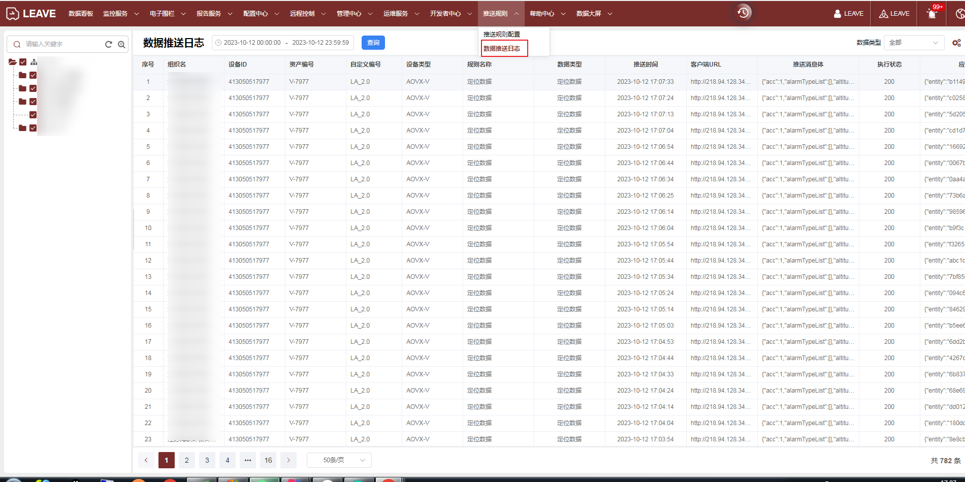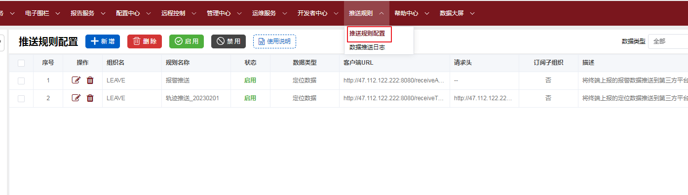 配置生效后,系统接收到设备上报的数据会将数据解析成JSON字符串后推送给客户配置的地址。