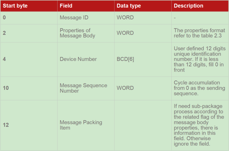 The start/end flag is 0x7E, if there 0x7E exists in the checksum, message header or message body, it must be transferred meaning, the transferred meaning rules is shown as the below: