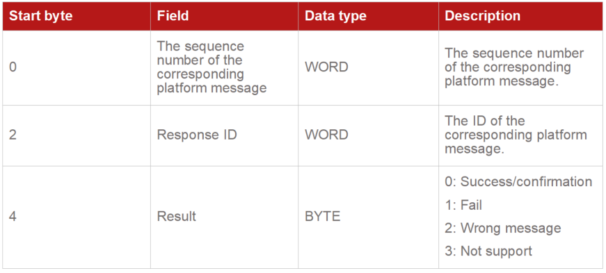 Message ID: 0x8A00 platform RSA public key * message body is TBD.