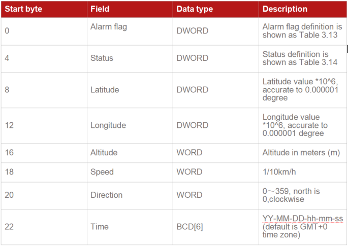 Location information report message body is made up with location basic information and location additional information item list. Message structure is shown as follows: