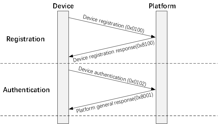 In the unregistered status, V series devices will register firstly. The device will obtain the authentication code and save it after the successful registration. The authentication code will be used when the device logged in. The registered device only needs to login with the saved authentication code.