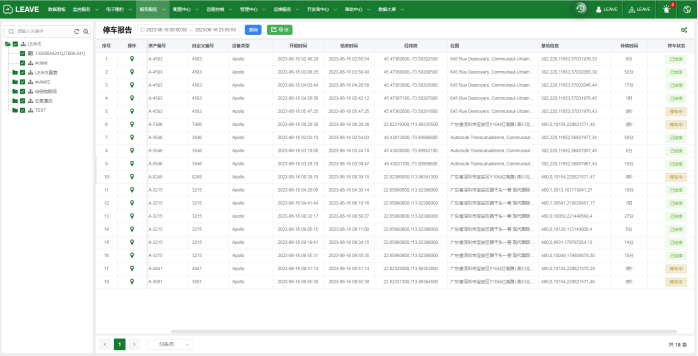 查看一段时间内,设备停车点数据,及在某个位置停留超过5分钟以上。此报告需要设备具备速度属性。报告一样支持导出到Excel与PDF。作者:admin 创建时间:2023-06-16 14:21最后编辑:admin 更新时间:2024-06-06 18:12