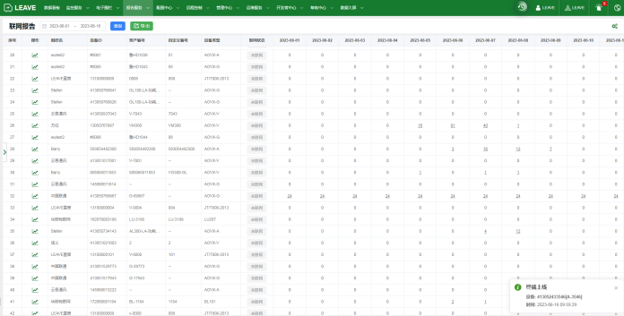 联网报告是查看设备每天是否有连接系统的动作,可以通过设备的工作模式判断设备联网是否正常,从而可以得出当前设备的工作是否正常,大大有助于测试设备的工作状态是否正常,报告同样支持导出到Excel与PDF。作者:admin 创建时间:2023-06-16 14:21最后编辑:admin 更新时间:2024-06-06 18:12