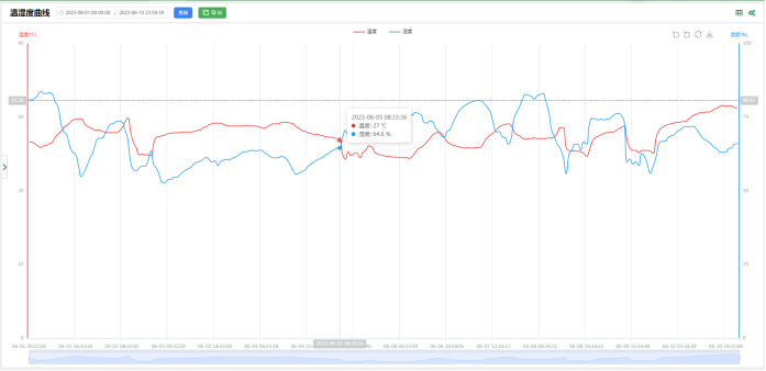 针对冷链监控设备,可以查看设备一段时间内的温湿度变化曲线,同样支持导出数据到Excel与PDF,并且曲线可以直接支持下载。作者:admin 创建时间:2023-06-16 14:21最后编辑:admin 更新时间:2024-06-06 18:12