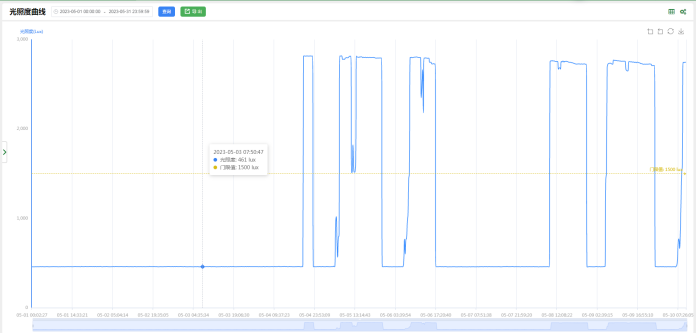 如果设备支持光通量监测,可以查看设备的光通量曲线。光照度曲线同样支持数据导出到Excel与PDF,并且曲线可以直接支持下载。作者:admin 创建时间:2023-06-16 14:22最后编辑:admin 更新时间:2024-06-06 18:12