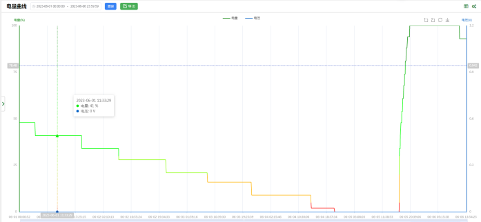 针对蓄电池设备,可以查看一段时间内设备的电量变化,通过电量曲线可以直观的看到设备每天消耗的电量从而给出客观的数据说明设备预计可以工作多少天。电量曲线数据支持导出到Excel与PDF,曲线支持直接下载。作者:admin 创建时间:2023-06-16 14:22最后编辑:admin 更新时间:2024-06-06 18:12