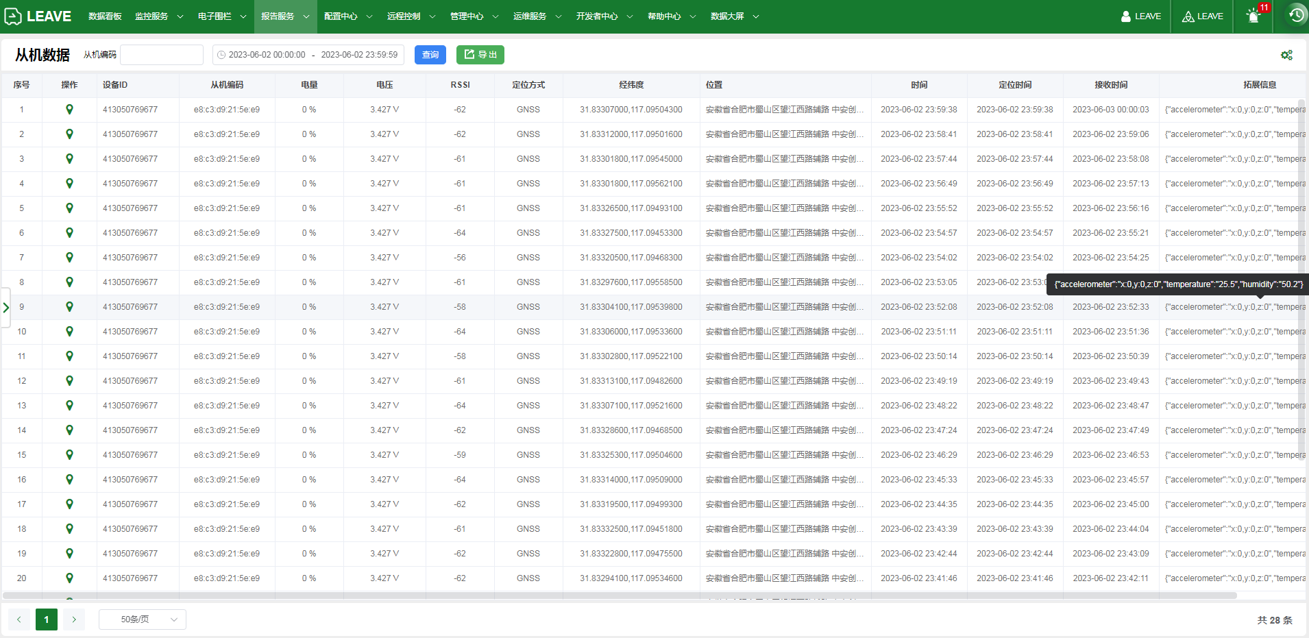 针对可以通过蓝牙、Loar等技术外接传感器或者其他类型的从机设备,用来展示这些从机的数据的报告,从机报告支持数据导出到Excel、PDF作者:admin 创建时间:2023-06-16 14:25最后编辑:admin 更新时间:2024-06-06 18:12