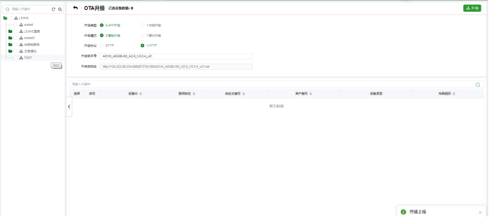 需要设备支持FOTA才能使用,对FOTA固件信息进行管理,系统支持上传与删除固件版本并且可以指定固件版本对设备进行升级。作者:admin 创建时间:2023-06-16 14:34最后编辑:admin 更新时间:2024-06-06 18:12
