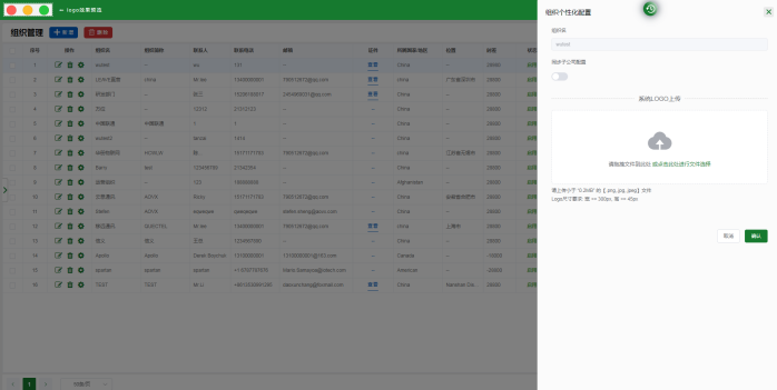 Contents Search Unfold 框架设计数据看板监控服务资产监控分屏监控轨迹回放视频监控视频回放电子围栏围栏管理围栏配置围栏类型报告服务AI 报警报警报告轨迹报告里程日历行驶报告停车报告联网报告温湿度曲线光照度曲线震动曲线电量曲线终端报文开关锁报告事件报告从机数据终端每小时轨迹量配置中心设备类型管理报警类型管理事件类型管理辅助定位接口配置远程控制远程指令集指令记录离线指令管理OTA管理OTA记录管理中心组织管理用户管理角色管理设备管理资产管理资产所属人分享管理MQTT账户管理运维服务终端异常登记资产异常登记系统运维基站维护WiFi维护系统操作日志用户注册审核开发者中心OpenApi个性化设置用户个性化配置公司个性化配置关闭与开启报警提醒报告列表字段的自定义呈现账户分享推送规则服务(WebHook)推送规则配置推送记录 No search results! Number of views:132 Document is Published by MinDoc 组织管理 为客户创建一个公司支持组织的修改与删除,并且可以指定组织自定义系统logo作者:admin 创建时间:2023-06-16 14:35最后编辑:admin 更新时间:2024-06-06 18:12