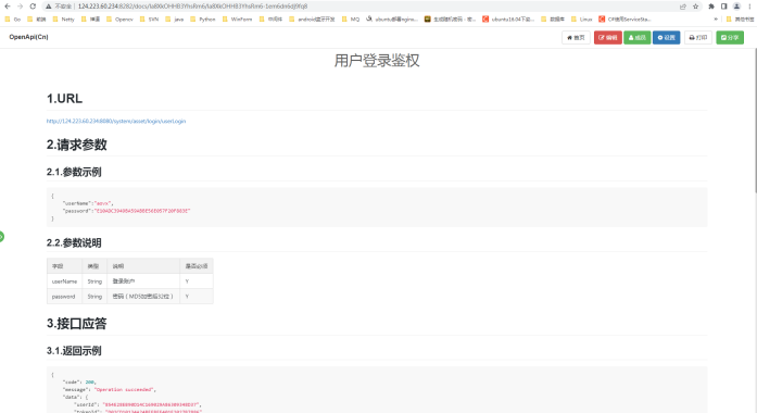 Contents Search Unfold 框架设计数据看板监控服务资产监控分屏监控轨迹回放视频监控视频回放电子围栏围栏管理围栏配置围栏类型报告服务AI 报警报警报告轨迹报告里程日历行驶报告停车报告联网报告温湿度曲线光照度曲线震动曲线电量曲线终端报文开关锁报告事件报告从机数据终端每小时轨迹量配置中心设备类型管理报警类型管理事件类型管理辅助定位接口配置远程控制远程指令集指令记录离线指令管理OTA管理OTA记录管理中心组织管理用户管理角色管理设备管理资产管理资产所属人分享管理MQTT账户管理运维服务终端异常登记资产异常登记系统运维基站维护WiFi维护系统操作日志用户注册审核开发者中心OpenApi个性化设置用户个性化配置公司个性化配置关闭与开启报警提醒报告列表字段的自定义呈现账户分享推送规则服务(WebHook)推送规则配置推送记录 No search results! Number of views:90 Document is Published by MinDoc OpenApi 供第三方系统调用接口进行他们的业务开发作者:admin 创建时间:2023-06-16 14:41最后编辑:admin 更新时间:2024-06-06 18:12
