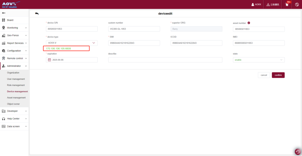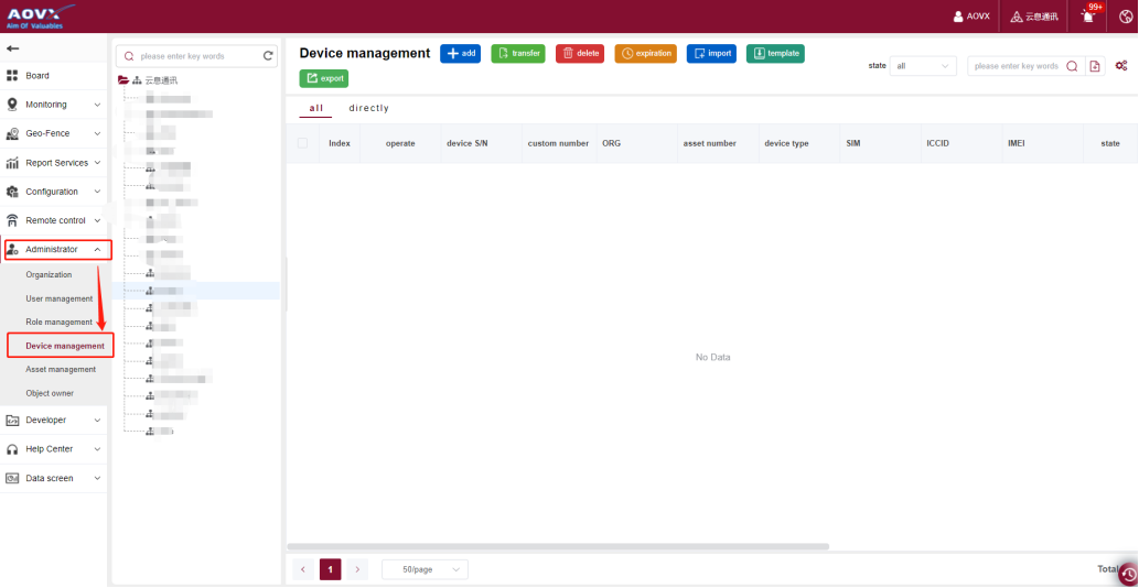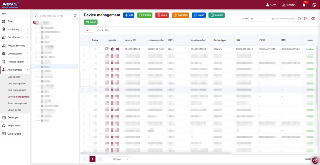The entrance of the registered device is in the Administrator ——>Device management module. The interface is shown below: