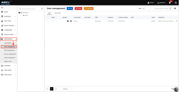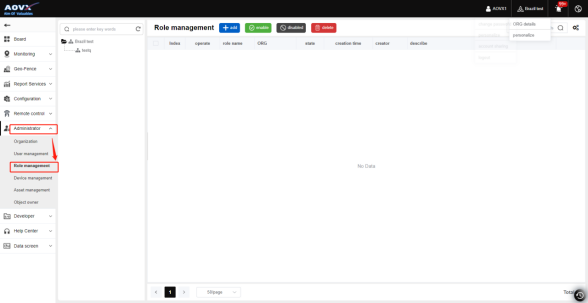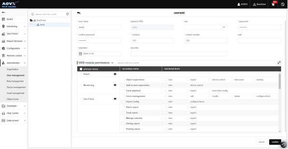 Select the organization name on the organization tree on the left, and you can create an account for the current organization that can only manage asset and device information for the current organization and its affiliated organizations.