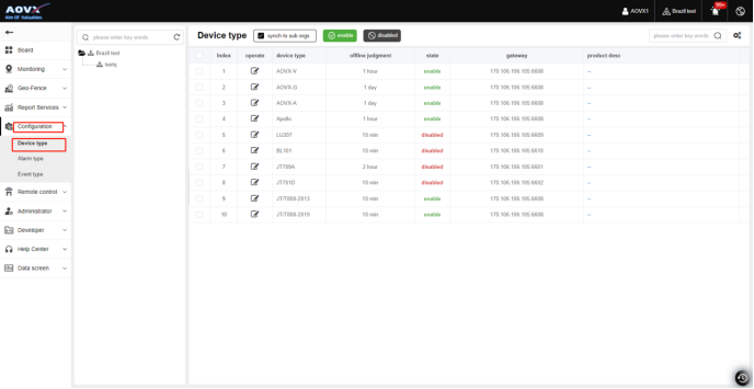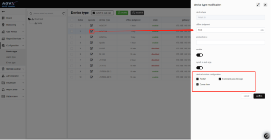 In the device type management, you can customize whether the device is offline according to the device type, and the shortcut keys that define its monitoring interface